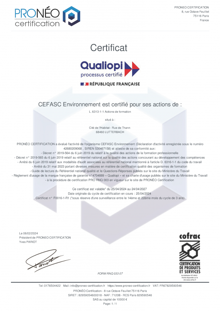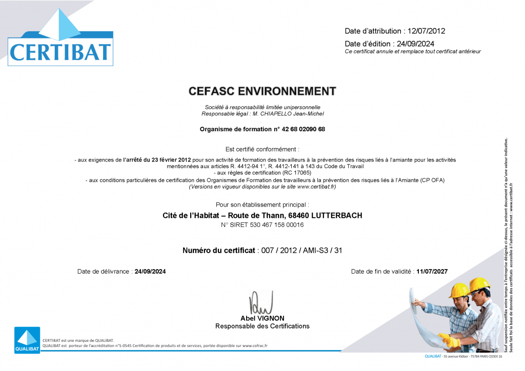 Centre de formation indépendant, le CEFASC a pour objectif de diffuser les bonnes pratiques d’évaluation et de gestion des risques liés à l’utilisation, à l’entretien et la décontamination des bâtiments et procédés industriels.